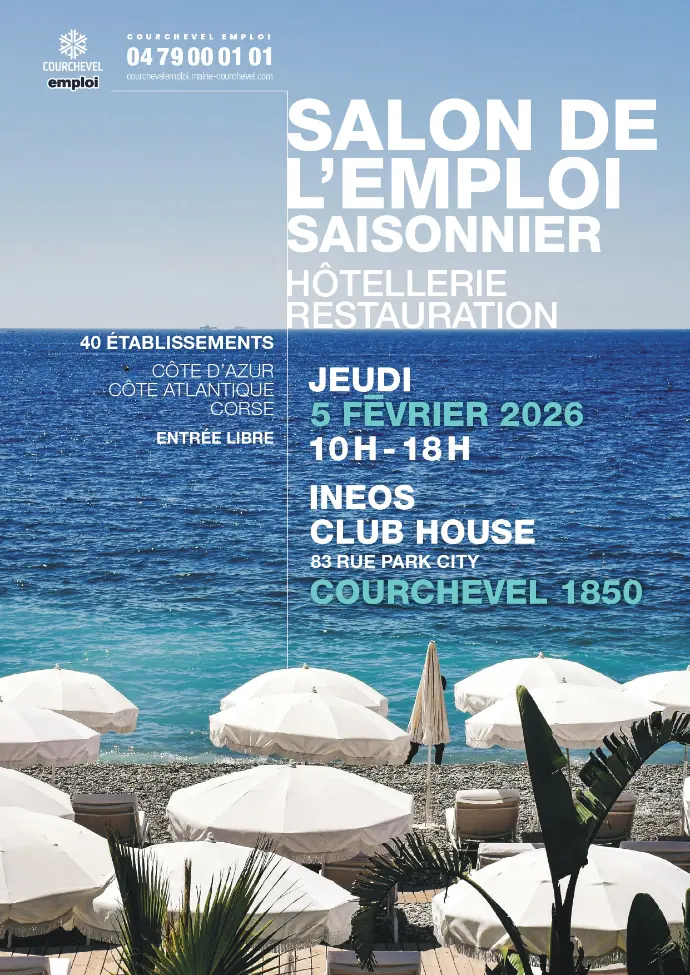 Courchevel Emploi organise le salon de l'emploi des métiers de l'hôtellerie et de la restauration, un événement dédié à l’ensemble des professions du secteur : hébergement, housekeeping, restauration, cuisine, administratif, technique, sécurité, spa et bien-être.